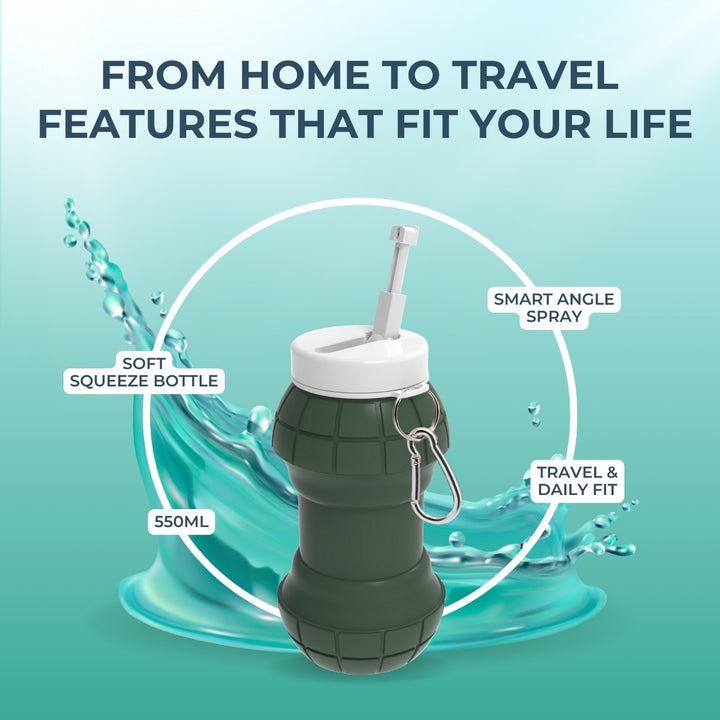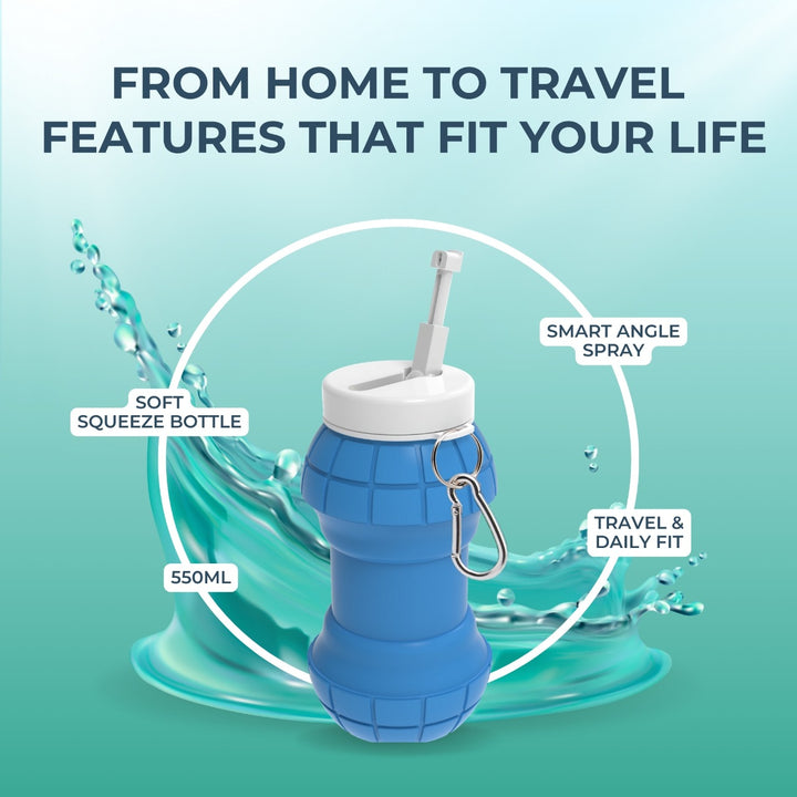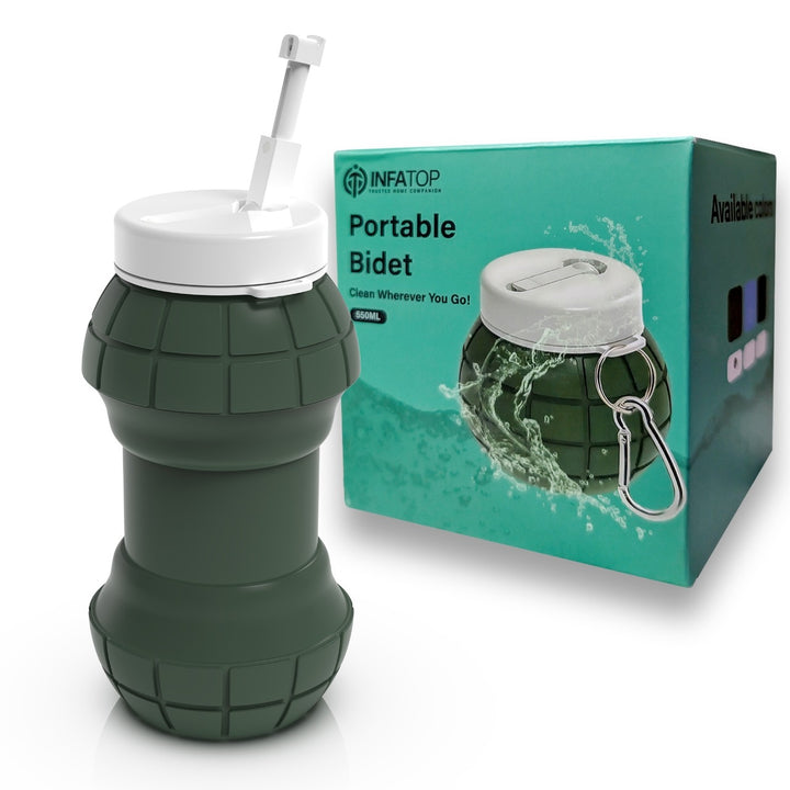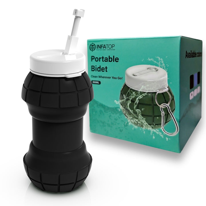 The INFATOP Portable Bidet is a foldable, leak-proof, 550ml soft-silicone bottle that provides gentle water pressure for perfect personal hygiene — at home, in the office, on-the-go or while travelling.